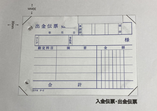 矢印の指示に従い、カッターで浅い切り込みを入れます。切り込みに伝票の角を軽く差し込み、ズレないように固定します。 切り込みを入れるのが手間な場合、市販の付箋のりで伝票用紙の四隅を固定しても大丈夫です。
