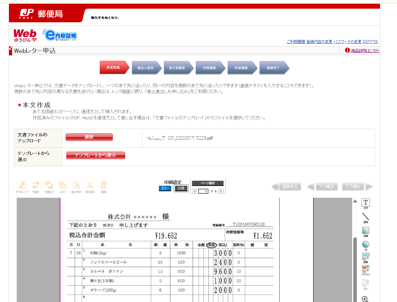 - Webゆうびんにアップロード: 日本郵便のサイトへログインし、作成したPDFをアップロードします。