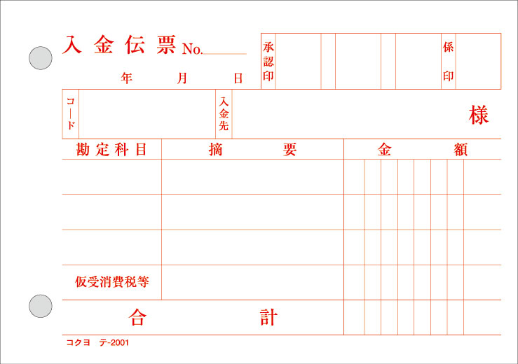 入金伝票 (コクヨ テ-2001N)